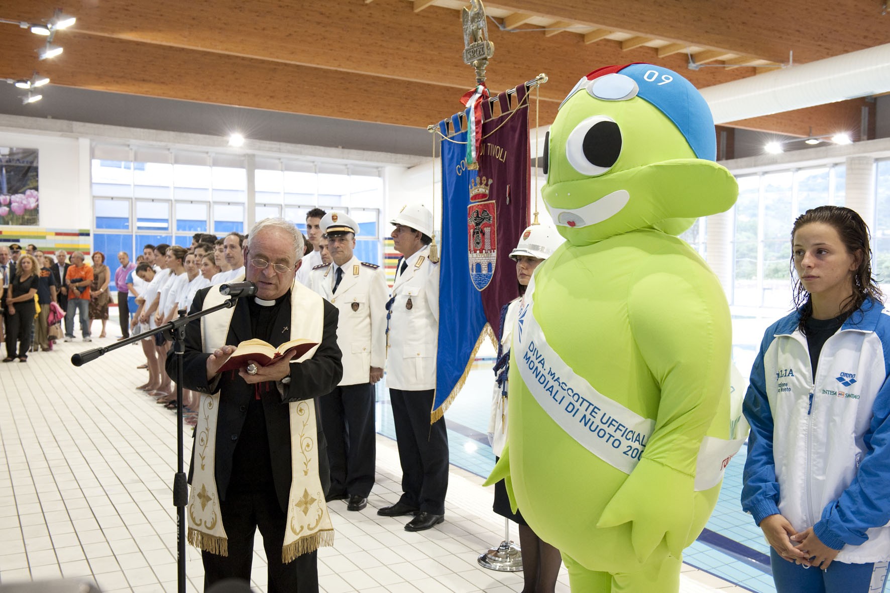 Alla cerimonia di ieri sono intervenuti il Sindaco di Tivoli Giuseppe Baisi, l’assessore allo sport e alla cultura della Regione Lazio Giulia Rodano, l’assessore ai lavori pubblici della Provincia di Roma Marco Vincenzi, il commissario straordinario per Roma 2009 Claudio Rinaldi, il presidente regionale della Fin Gianpiero Mauretti, il Presidente del Comitato organizzatore Roma 2009 Giovanni Malagò.